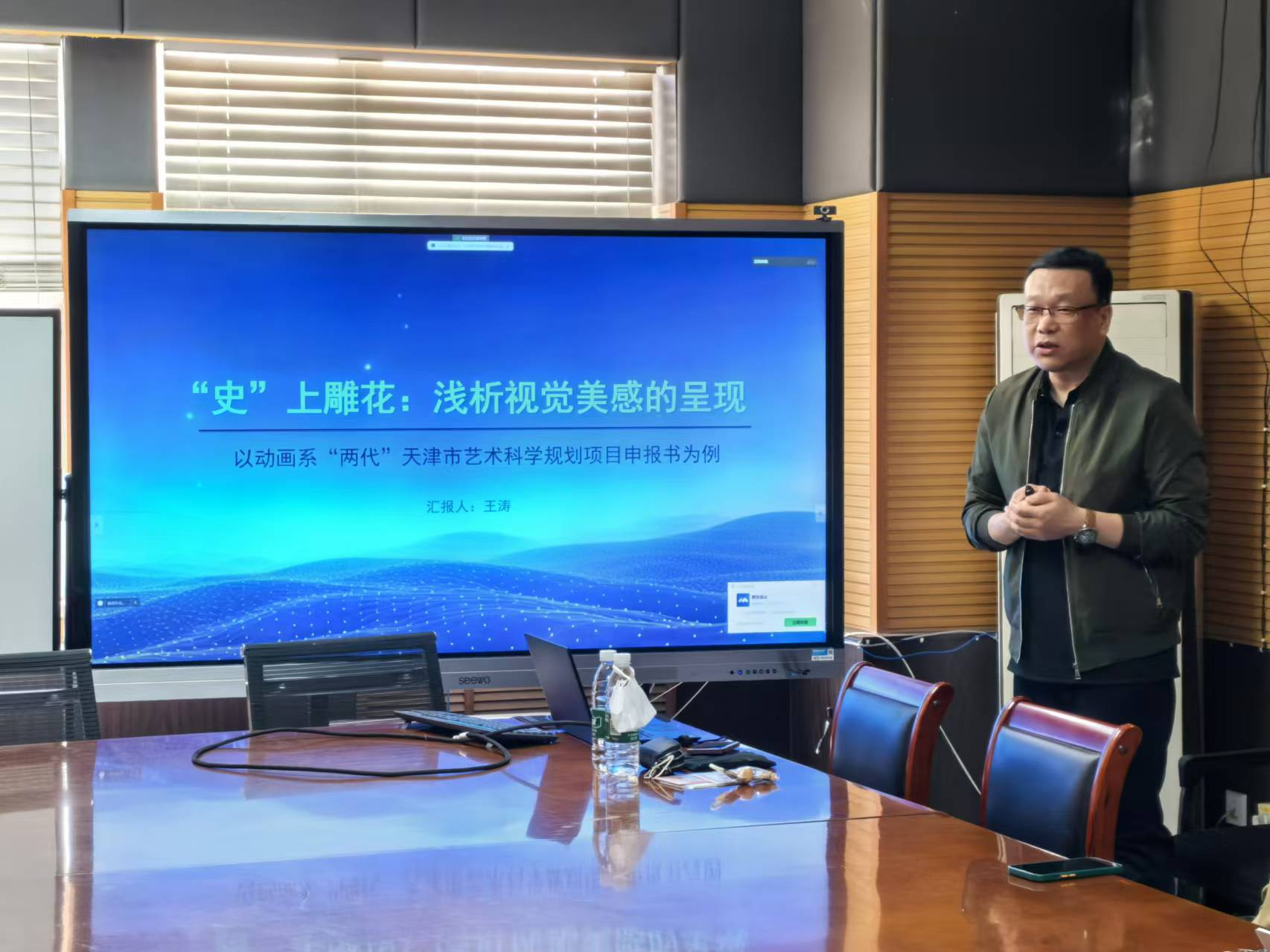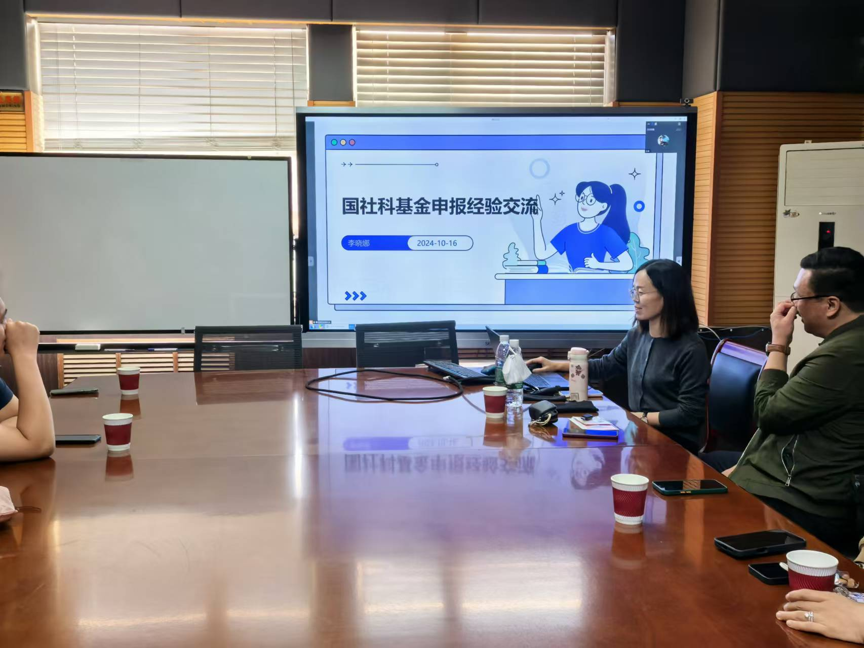 王涛在申请书撰写和调整方面有着独到的经验,带领公司教师获批了4项省部级项目,本次分享会他从项目申请书撰写、修饰整理方面进行了细致入微的分享,重点强调文字表达到图形表现的转换思想;李晓娜详细分享了国家社科基金艺术学青年项目申报前的准备及结项工作,鼓励青年教师多申报、多锻炼。报告结束后,与会老师进行了交流和讨论。