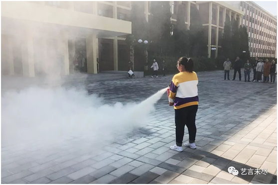 在统一哨声响起后,大家紧凑、有序地从宿舍房间模拟逃离。在安全逃离宿舍楼后,全体同学们在43号员工公寓楼前空地集合。随后来自公司保卫处的老师为同学们详细讲解灭火器的使用方法以及注意事项。大家认真聆听老师的讲解,并且现场实际动手操作使用。