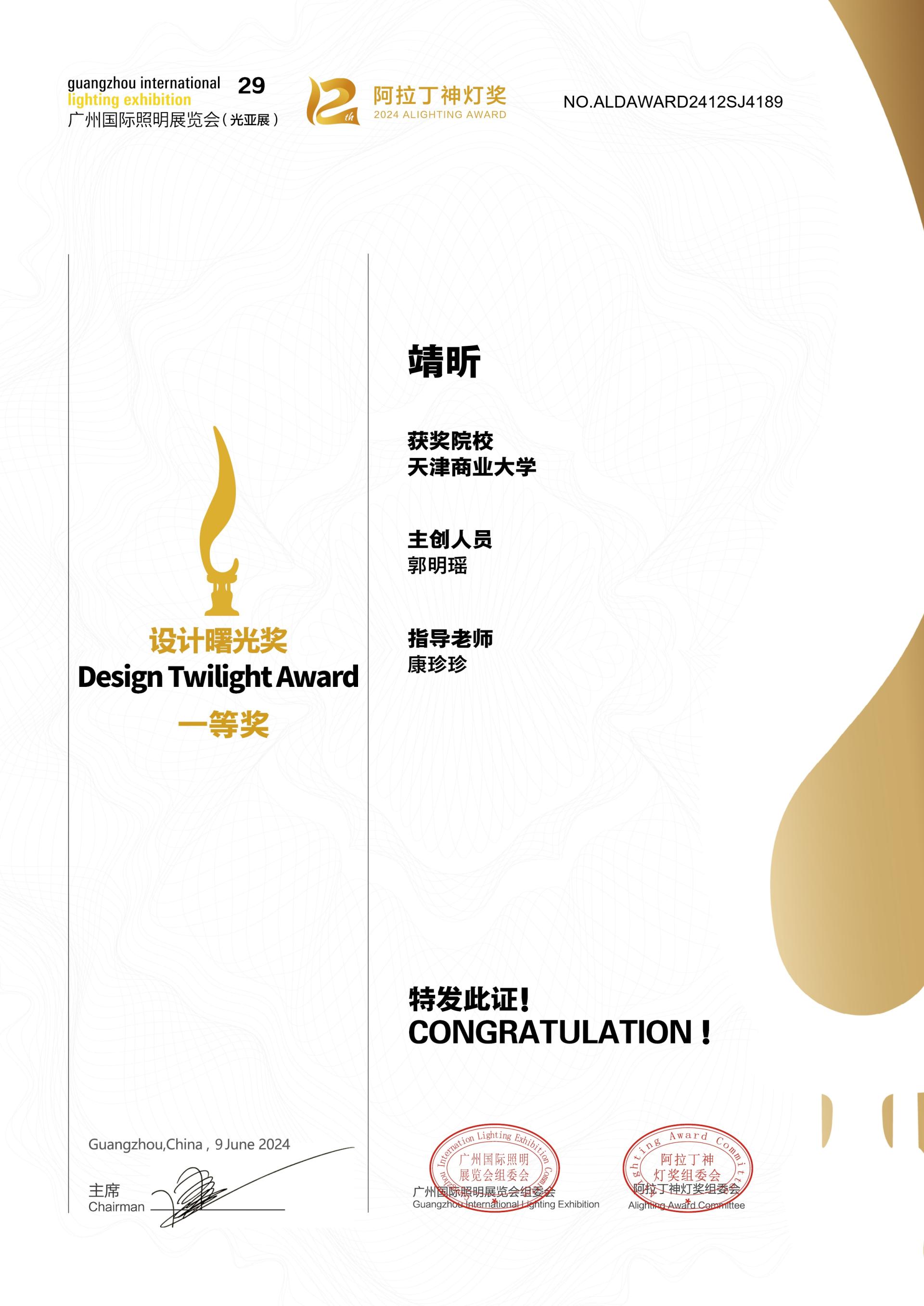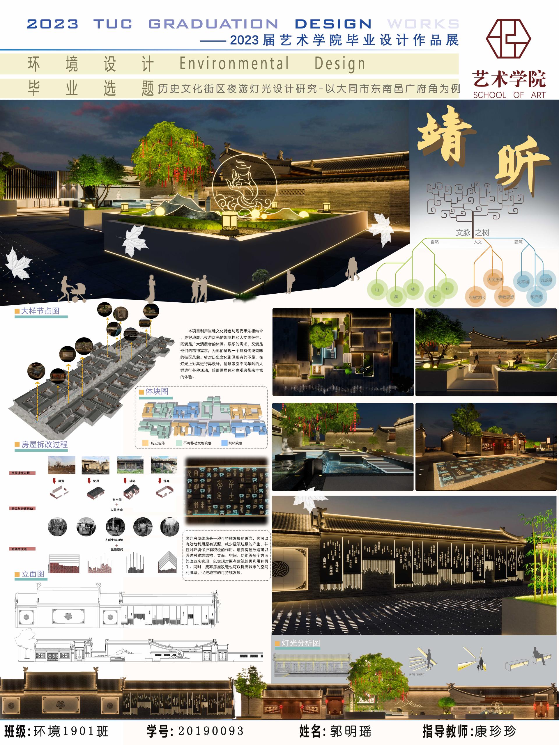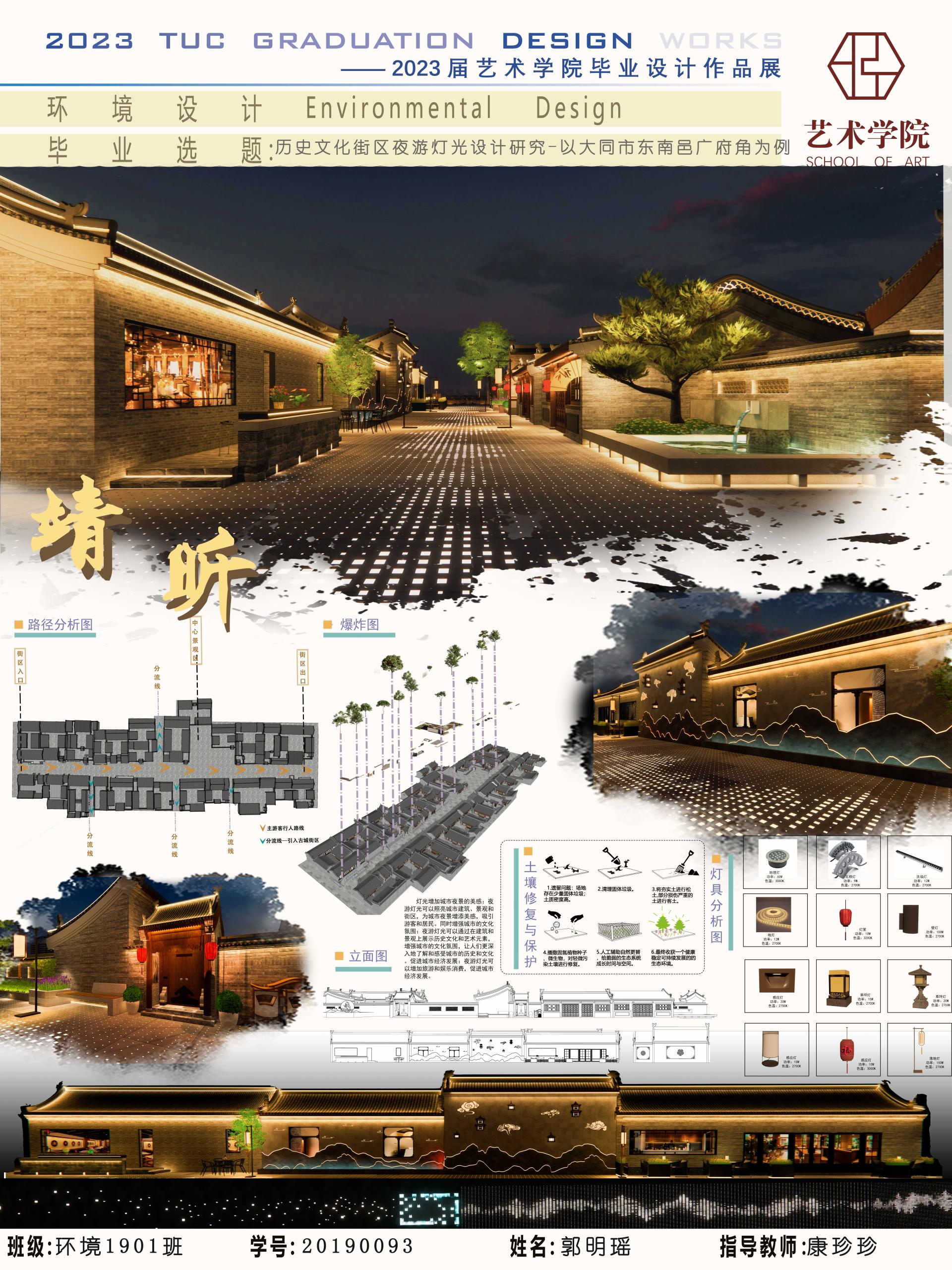 永利集团3044环境设计系灯光照明设计方向2019级员工郭明瑶,其“靖昕——山西大同东南邑广府角历史文化街区夜景照明设计”毕设作品,参加了2024年第十二届“阿拉丁神灯奖”大赛并获得一等奖。该设计作品从文旅照明的角度出发,充分挖掘历史文化和地域文化,通过现代转译的手法,以丰富的照明设计效果进行呈现,以点、线、面相结合的方式,打造出层次丰富,充满韵味的历史文化街区灯光夜景景观。