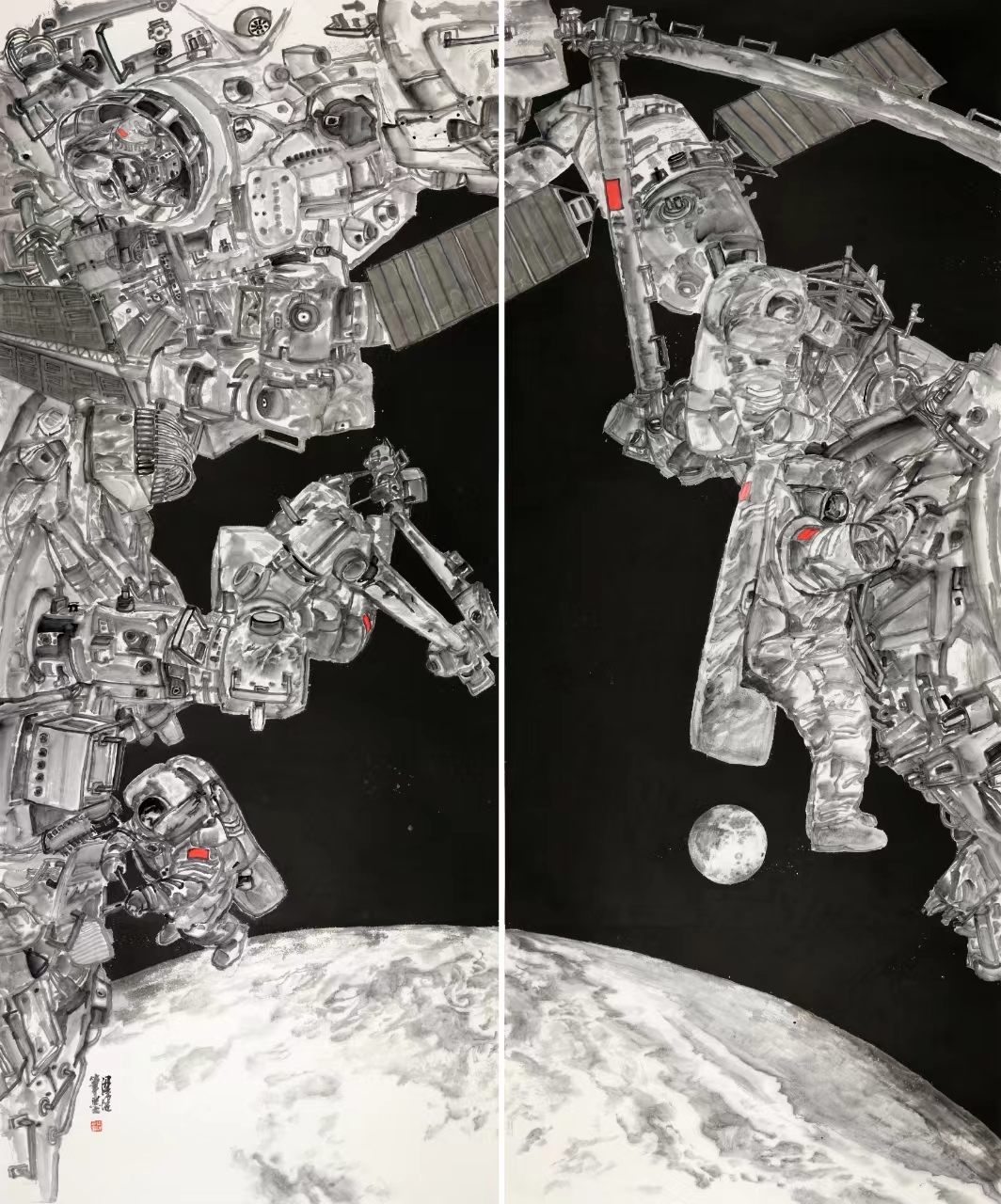 《筑梦寰宇》 宣纸水墨 尺寸:200cmx235cm 2024年