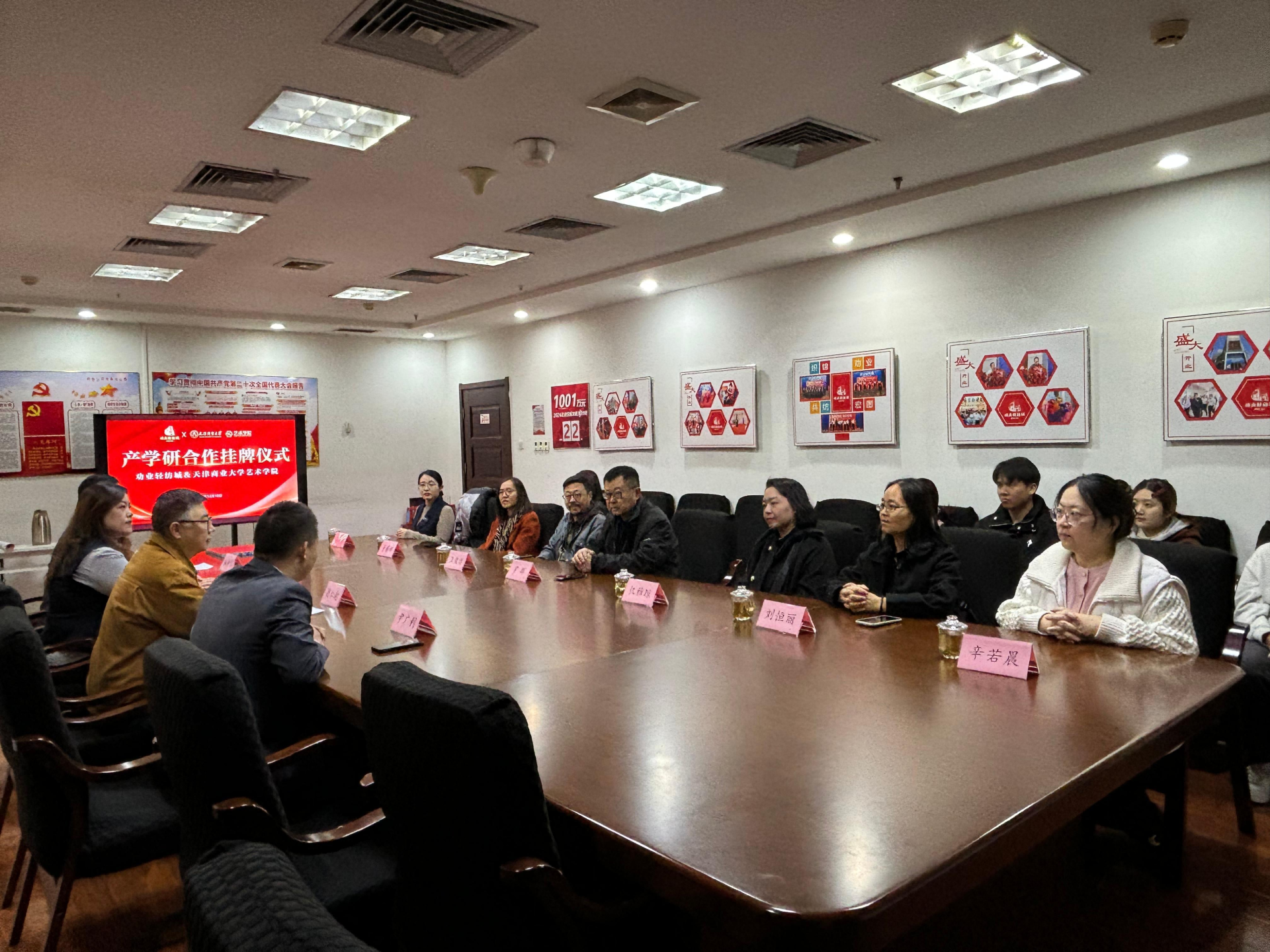 12月10日,公司领导班子赴劝业轻纺城开展访企拓岗交流并举行“产学研实习就业基地”授牌仪式。天津劝业场集团南开百货有限公司党支部书记钱仁起、劝业轻纺城领导班子成员、永利集团3044教师及员工代表出席活动。