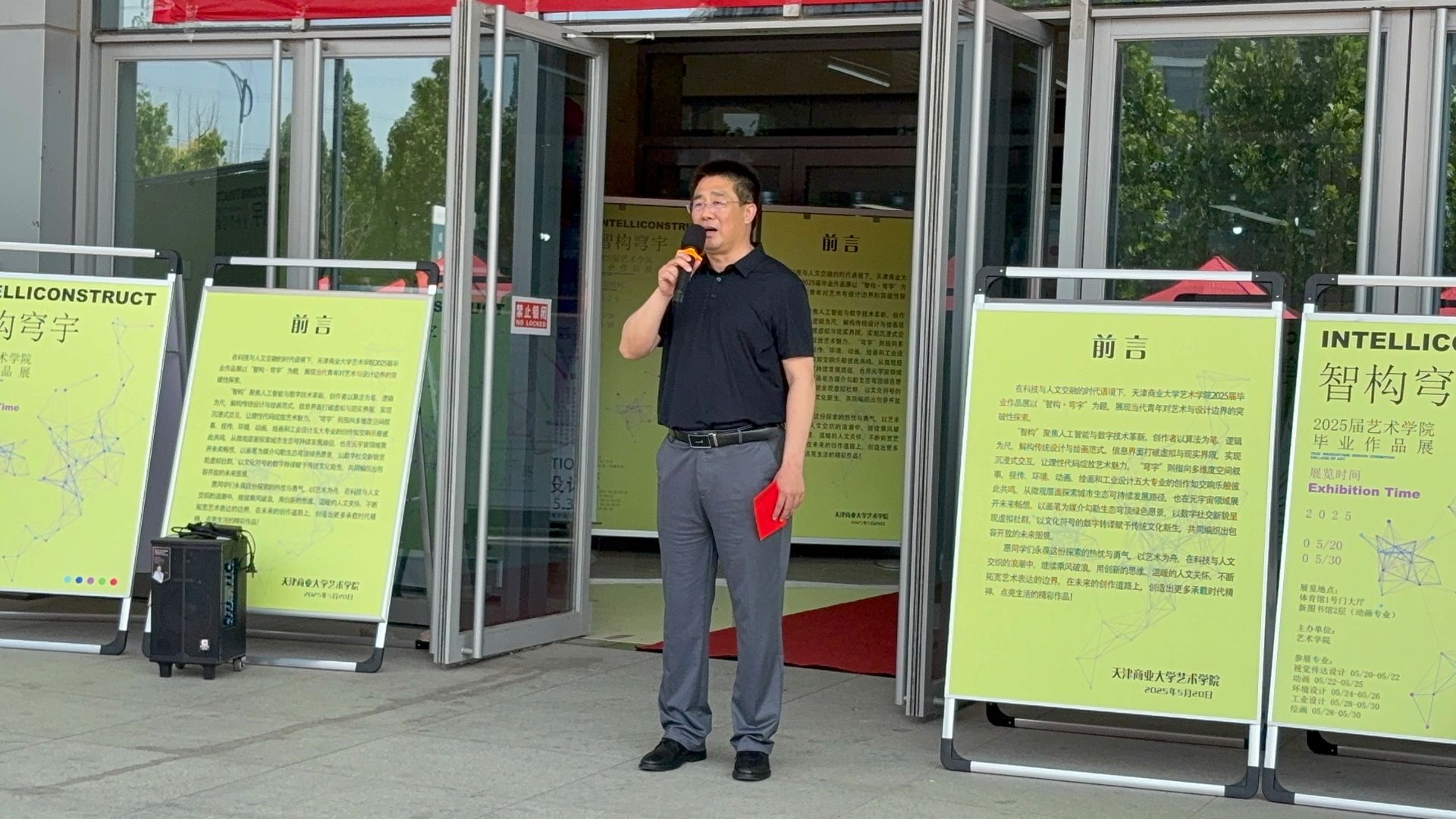 崔强在开幕辞中对2025届毕业生举办作品展表示祝贺,对指导教师和同学们将人工智能等新兴技术融入艺术创作的探索实践表示赞许,对永利集团3044将毕设展与招聘会联合举办的创新举措表示肯定。
