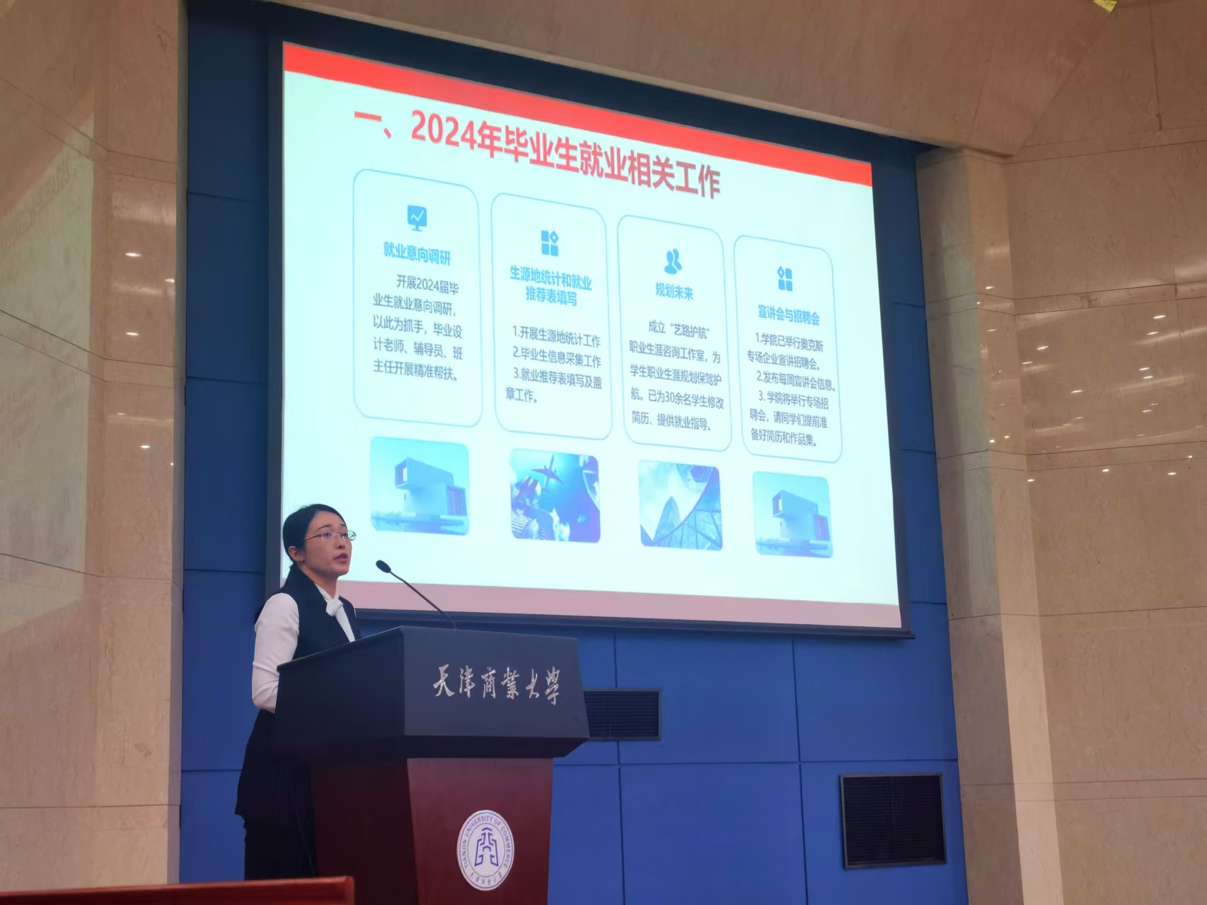 工业设计系主任李晓娜介绍了工业设计系在员工就业帮扶方面的创新举措,号召老师们积极拓展员工资源,细致开展就业指导,为准备考研、出国、企业就业的同学保驾护航。辅导员王振宇详细介绍了公司就业相关活动、不同就业类型及相关政策,提示大家注意求职安全。(审稿:罗晖)