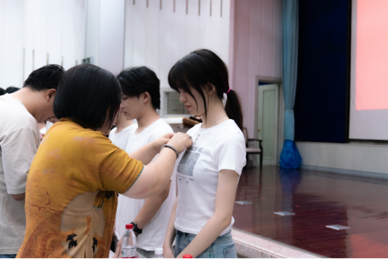 教师为新生代表佩戴校徽