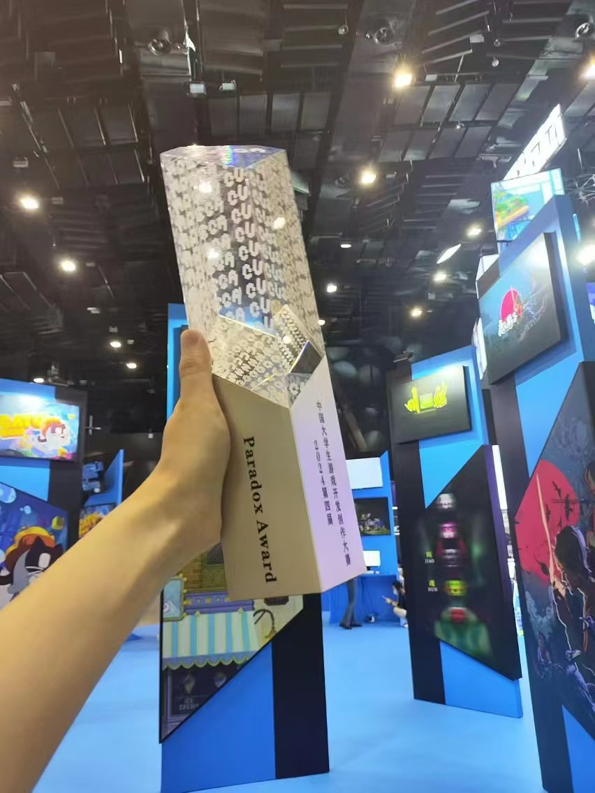 20级高怡雪同学所在团队的作品成为入围大赛“Paradox Award”奖的4个作品之一,并在现场最终评选中赢得此项大奖。高怡雪同学作为团队核心成员,负责游戏开发艺术设计,展现出永利集团3044员工非凡的创造力和专业能力。