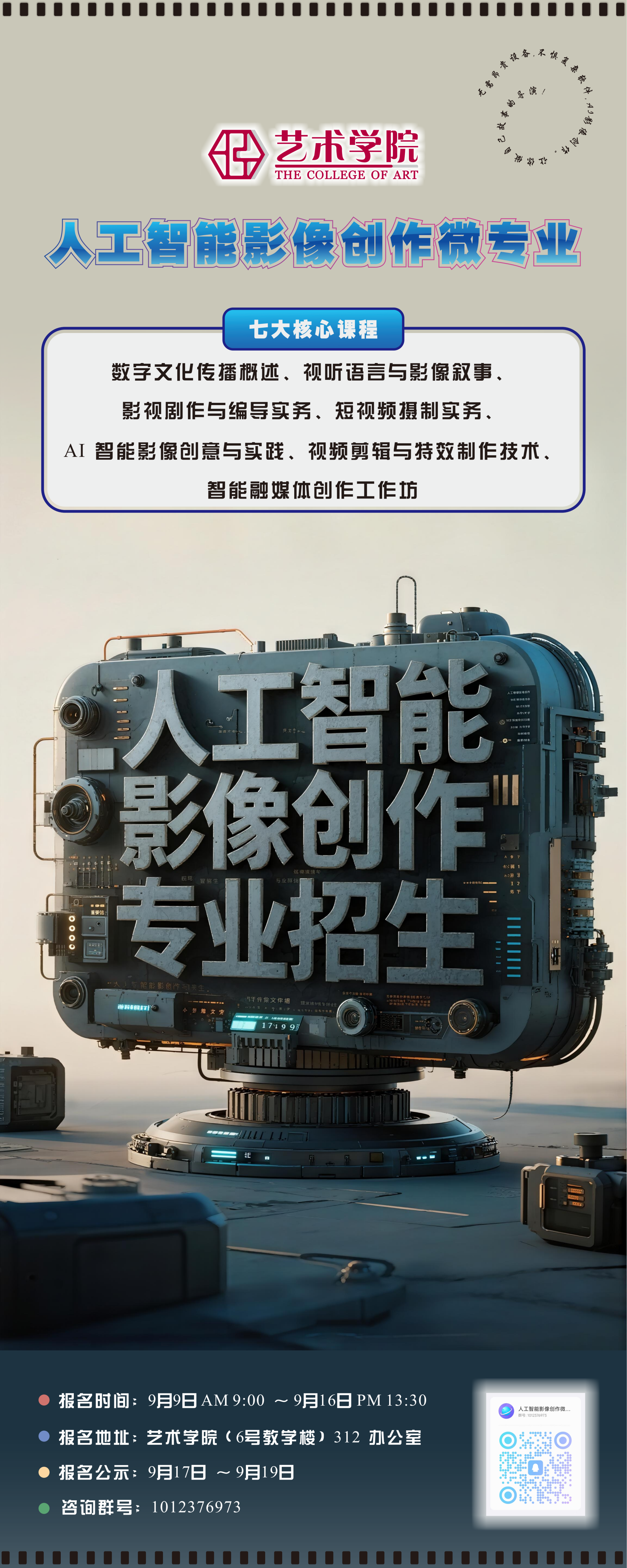 本微专业聚焦人工智能在影视创作领域的应用,以“影视IP内容创作—智能工具平台应用—数字化传播”为培养链条,致力于培养懂文化、擅技术、会创意的跨界人才。通过系统学习数字文化传播理论、视听语言与新媒体策略,员工将掌握影视剧本创作、短视频拍摄、后期剪辑与特效合成等实践应用能力,并能熟练运用AIGC工具提升创作效率,具备从创意提案到项目推广的全流程运作能力。